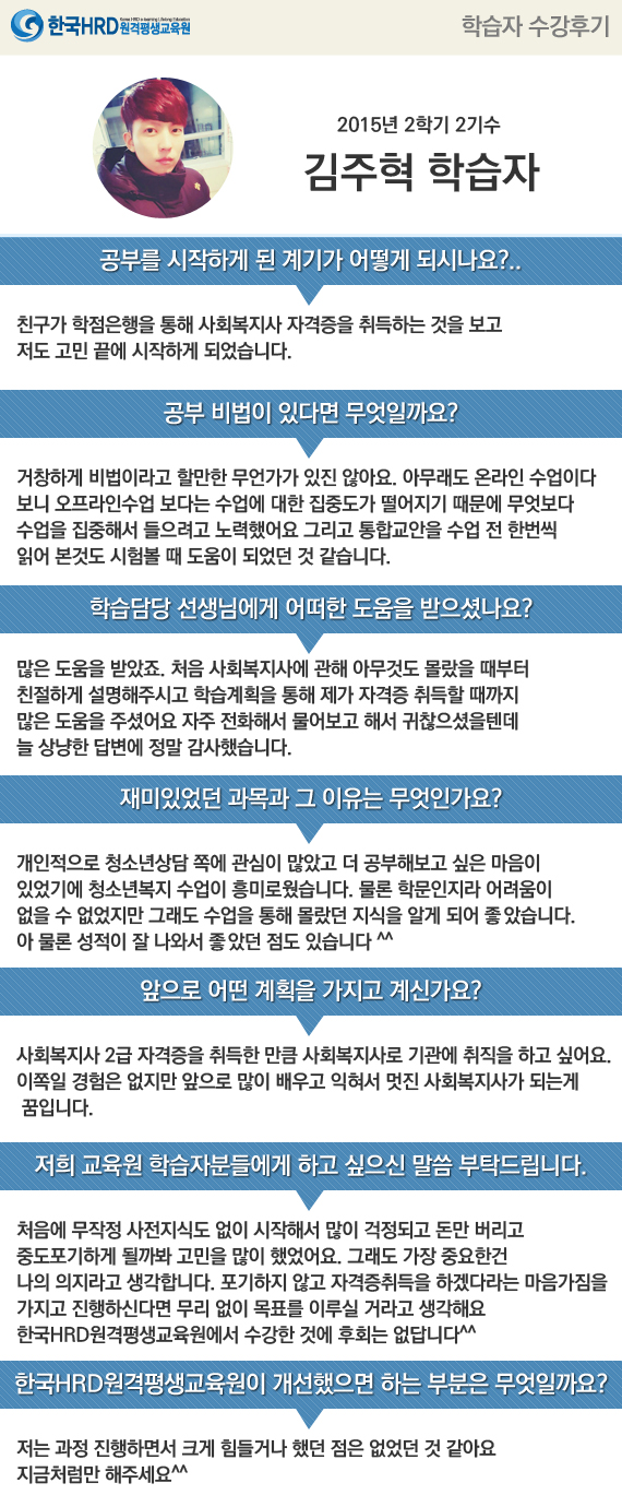 [김주혁님] 친구가 학점은행을 통해 사회복지사 자격증을 취득하는 것을 보고...