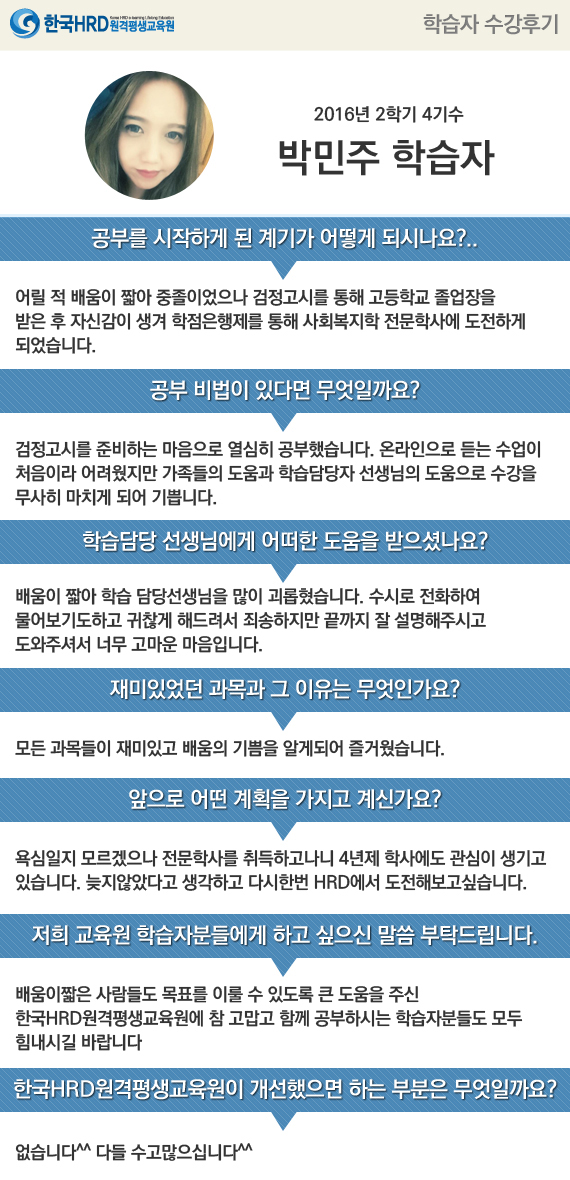 [박민주님] 어릴 적 배움이 짧아 중졸이었으나 검정고시를 통해 고등학교...