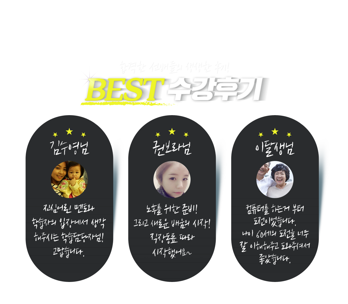 교육원은 회원께 차별화된 다양한 서비스 및 최적의 맞춤 서비스를 제공해 드리고자 최소한의 회원의 개인정보를 수집, 이용하고 있습니다.