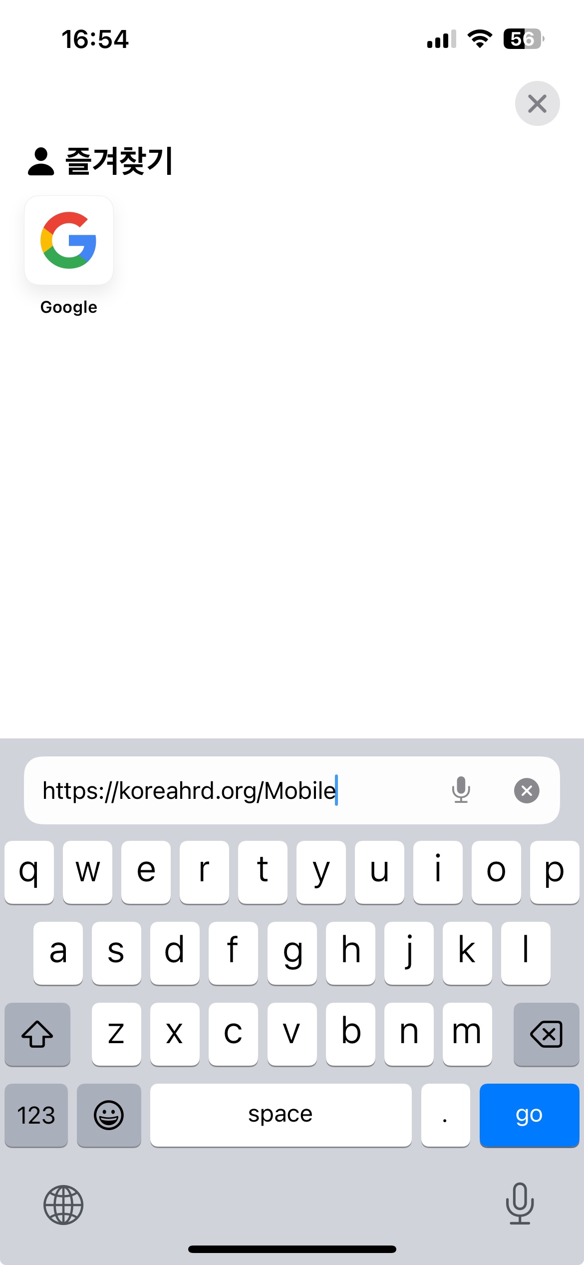 URL 경로에 www.koreahrd.org/Mobile 입력 후 이동합니다.