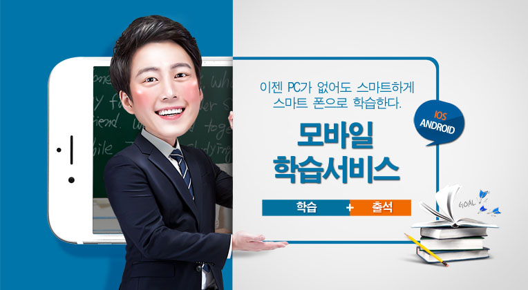 • 모바일 학습은 설치된 어플리케이션, 외부통신망(3G, 와이파이 등), 휴대전화의 버전등과 같은 사용자의 환경에 따라 유동적인 부분이 발생할 가능성이 높습니다. 모바일 수강으로 출석률이 인정되지 않을 경우, PC로 접속하여 수강완료하여 주시기 바랍니다.
