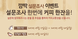설문에 참여해 주시는 분들 중 추첨을 통하여 커피교환권을